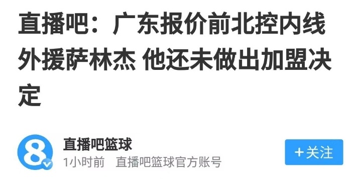 广东男篮最近的消息比较多,主教练杜锋的压力也是有些大,无论是之前夏季联赛中被新疆男篮逆转,还是国产中锋徐昕转会,球迷都认为和杜锋有直接的关系。在阵容调整方面,黄荣奇和张明池已经离队,球队有意将年轻球员王洪泽、陈家政上调到一队。在外援方面,广东男篮已经和麦考尔完成了签约,前NBA后卫奎因也答应了广东男篮的报价,双方正在进一步沟通签约问题。另外在大外援方面,广东男篮也有了确切的消息。据直播吧透露,广东男篮已经向萨林杰完成了报价。